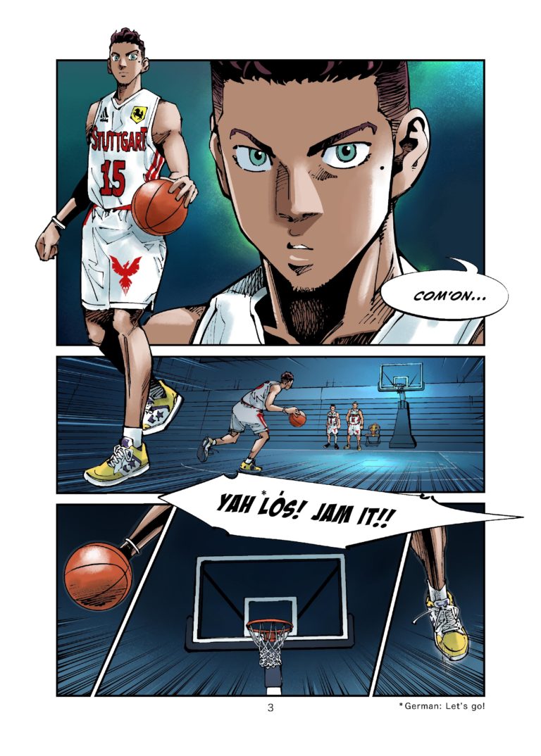 Kumejima, Okinawa Prefecture, Japan: Not more than 2 weeks removed from his triumph in the German U17 German Club Championship, Kam finds himself on a tiny island in the Pacific, halfway around the world after his Mother is transferred to command the small US Naval base thereon. As Kam lies beneath the rusty rims of an old sun-drenched beachside court, the only sign of basketball he’s found since his arrival in the islands, he laments the loss of his best friends and teammates, Tobi and Eldwin, and skeptically ponders his future. Will he be able to follow his dreams in this new home? Do they even care about basketball here?