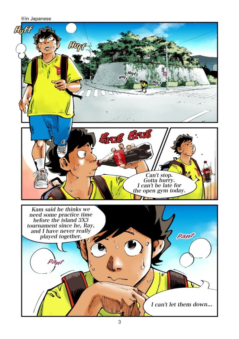 Kumejima, Okinawa, Japan: After reuniting with Miki, befriending a fellow American named Raymond, and learning of an upcoming 3on3 basketball tournament being held soon on the island, Kam starts to feel as though things might finally be looking up for him in his new home. The three eagerly agree to join up and enter a team in the competition, but since they have never actually played together, they need a place to practice before the tournament beings. Miki informs them of an Open Gym being held at a local high school… Kume High. “The school I’m supposed to attend.” Kam realizes. “Welp, a gym is a gym. What could be special about a school on this island?”